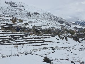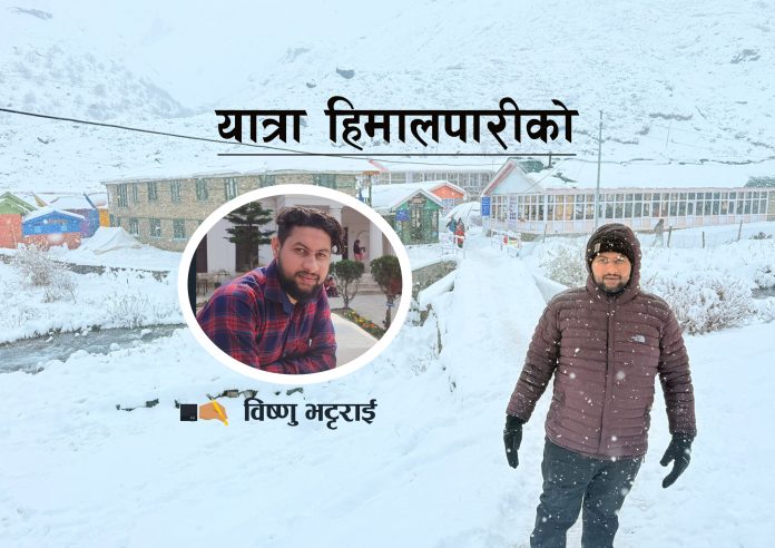 हिजो राती खाङ्सारदेखि करिब ७ घण्टाको पैदलयात्रापछि हामी यहाँ आएका थियौ । खाना खाने बेला राती हिउँ पर्ने सम्भावनाको गाईगुईले मन चसक्क बनाएको थियो । सुत्ने बेलातिरबाटै हिउँ पर्न थालिसेको रहेछ । साँझ ७ बजेदेखी हिमवर्षा सुरु भएको थियो । बिहान ३ बजे तिलिचो तालको यात्रामा जाने योजना लगभग समाप्त । राती नै हाम्रो भेलाले बिहानसम्म कुरौ न जान पाइहाल्छ की भन्ने भयो ।