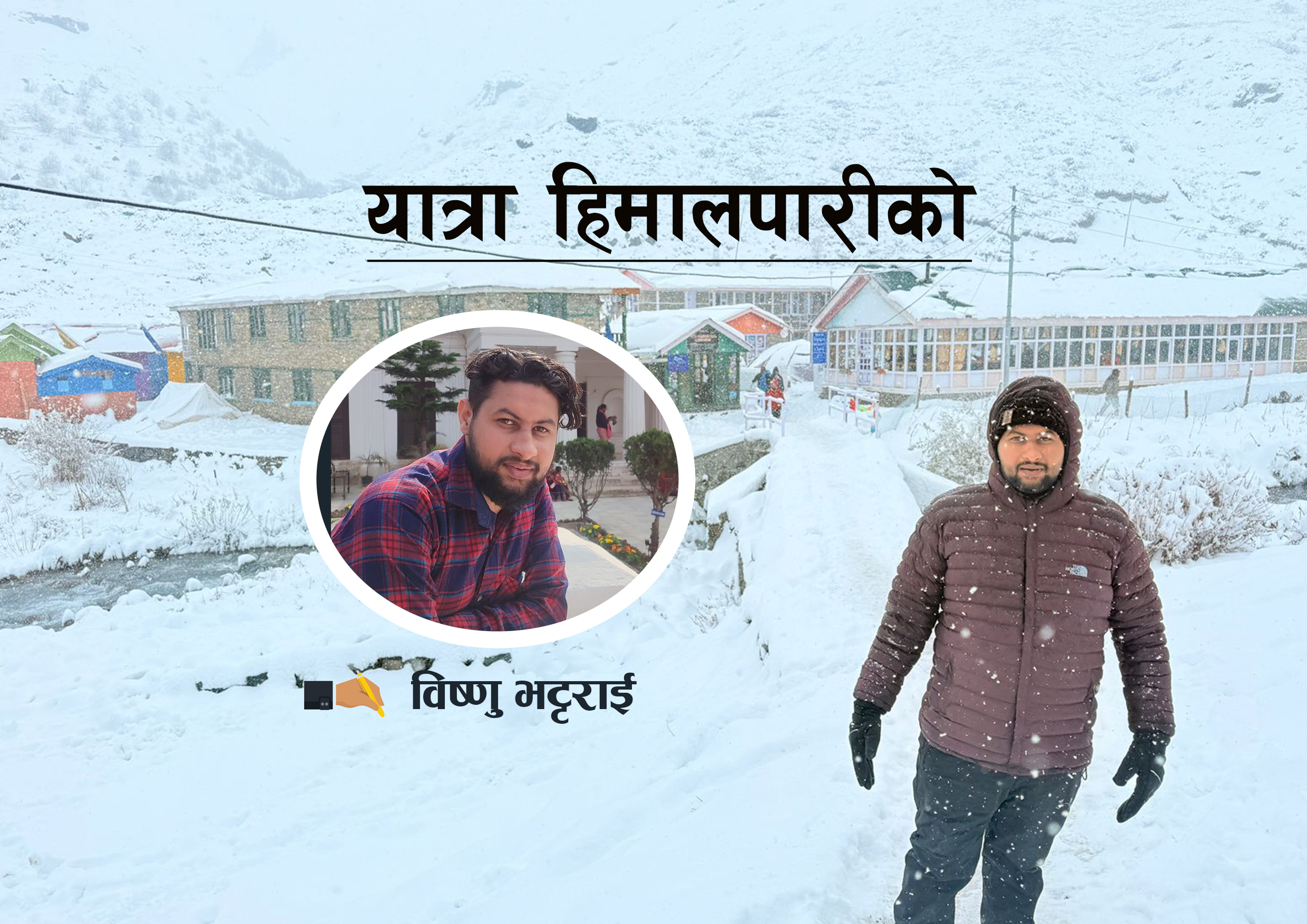 हिजो जादाँ र आज फर्किदा बिल्कुल फरक वातावरण थियो । फर्किदा हिजो देखिएका उराठलाग्दा काला पहाडहरु हिउँले सेताम्य भएका थिए ।