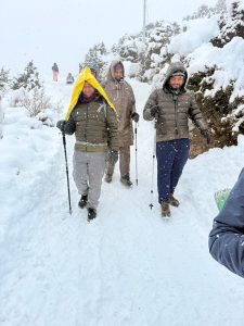 ६ बजेतिर अर्काे कोठाबाट कुलमणि दाइ र अजय दाइ आउनुभयो । डोजरका अपरेट पनि हाम्रै होटलमा बस्नुभएको रहेछ । बोलाएर कतिबेला जाने भनेर सोध्यौ । हिजो भनेजस्तै गरी केही बेरमा जाने भन्ने कुरा भो । सिडियो सरले गाडी त्यही छोडेर हिड्दै आउन भन्नुभएको कुरा कुलमणि दाइले सुनाउनुभयो । हामी भने गाडीसँगै लिएर जानेमा आशावादी थियौं । ८ बजेतिर हामी होटलबाट बाहिर निस्कियौं । हिमवर्षा रोकिएछ । तर, हिउँ भने जम्ने तरखरमा । जमेको हिउँ पग्लिएपछि चिप्लिदो रहेछ । होटलमा गएर सुप र पानी खायांै । नजिकै जेनेटरबाट मोबाइल चार्ज गर्ने व्यवस्था गरिएको रहेछ । साथीहरु मोबाइल चार्ज गर्न जानुभो । म पनि गएको थिए तर, ठाउँ खाली रहेनछ । गाडीमा गएर चार्ज गरेँ ।