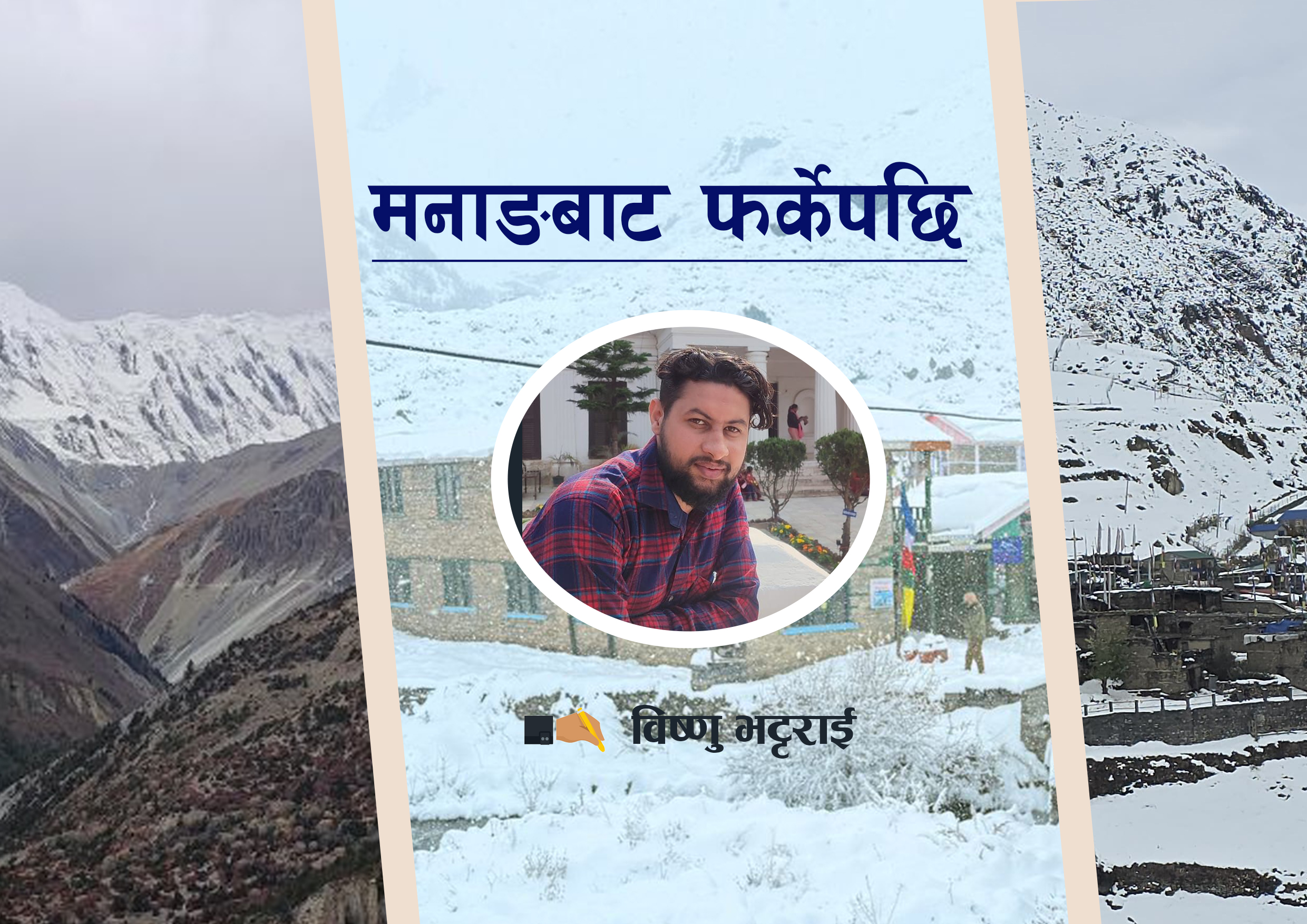 पाँच दिनको मनाङ यात्रापछि भैरहवा फर्किएको थिएँ । धेरैले मनाङ (तिलिचो) यात्राको बारेमा सोध्नुहुन्थ्यो । ठीकै भयो, रमाइलो भयो, हिउँ खेल्न पाइयो, दुःख पनि पाइयो भन्ने सामान्य जवाफ दिन्थे । हुन त केही मिनेटको बसाइमा धेरै कुराहरु बताउन सम्भव पनि थिएन । केहीलाई मोटामोटी रुपमा यात्राको बारेमा बताएको भए पनि इतिवृत्तान्त सबैलाई बताउन सम्भव पनि थिएन । मनमनै भने अथाह संस्मरणहरु थिए । हिमपातका कारण तिलिचो बेसक्यापबाटै फर्किनुपरेको नमीठो अनुभव थियो । फर्किएको दिन भैरहवामा पानी परिरहेको थियो । लामो यात्राको थकाइ थियो, आराम गरें । अर्काे दिनबाट अफिस गए ।