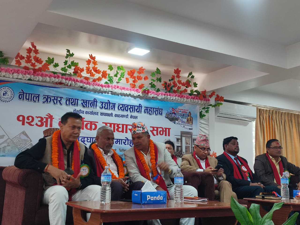 कार्यक्रमलाई सम्बोधन गर्दै महासंघका केन्द्रीय अध्यक्ष सिताराम न्यौपानेले २०७२ सालदेखि ७८० क्रसर उद्योग नवीकरणविहीन रहँदा ठूलो संख्यामा श्रमिक बेरोजगार बनेको बताए । उनले नेपाललाई आर्थिक रूपमा सशक्त बनाउन स्पष्ट कानुन आवश्यक रहेको बताउँदै निजी क्षेत्रको लगानी संरक्षण, उत्पादनको बजार र निकासी सहज बनाउने कानुनी आधार सरकारले बनाउनु पर्ने बताए ।