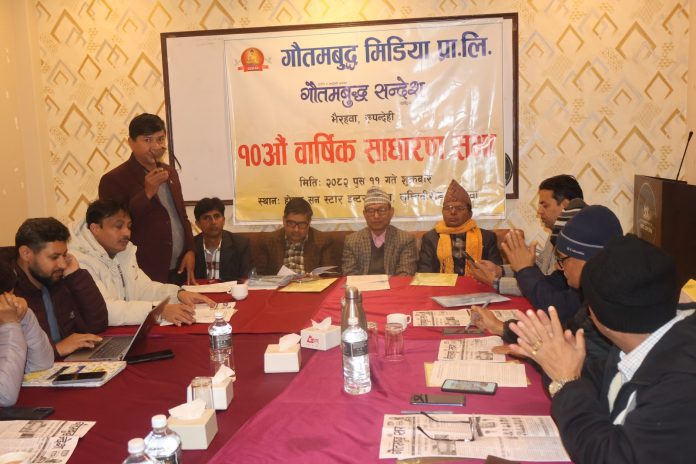भैरहवा, ११ पुस । गौतमबुद्ध मिडिया प्रा.लि. को १० औं बार्षिक साधारण सभा शुक्रबार भैरहवामा सम्पन्न भएको छ ।