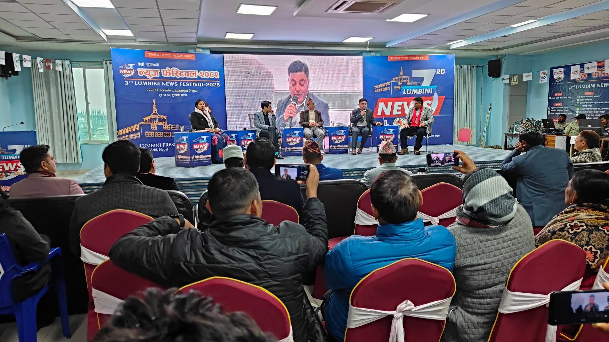 सो छलफलमा पर्यटन ब्यवासायी समेत रहेका लुम्बिनी होटल संघका अध्यक्ष लिलामणी शर्माले स्थानिय पर्यटन ब्यवसायीलाई बिहार र गुम्बालाई गेस्ट हाउसकोे रुपमा सन्चालन गरिनुु चिन्ताको विषय भएको बताए । लुम्बिनी पर्यटन परिषदका सदस्य समेत रहेका शर्माले लुम्बिनी आउने पर्यटकको बसाई लम्बाउनेगरी स्थानिय स्तरमा पर्यटन सम्बद्ध थप कार्यक्रम गर्न स्थानिय पर्यटन ब्यवसायी तयार भएको बताए । प्यानल छलफलमा लुम्बिनी विकास कोषका बरिष्ठ निर्देशक ज्ञानिन राईले तोकिएको समयमा लुम्बिनी गुरुयोजना पुरा गर्न नसकिएको प्रति दुःख ब्यक्त गदै लुम्बिनी विकास कोषले स्थानिय बासिन्दा, स्थानिय सरकार , प्रदेश सरकार सबैसँग हातेमालो गरेर अगाडी बढ्न सधै तयार रहेको बताए । प्यानल छलफलमा सहभागि कान्तिपुर टेलिभिजनका सम्पादक रुपेश श्रेष्ठले २२ बर्ष अगाडी आफु आउँदा लुम्बिनी जे देखेको अहिले पनि उस्तै हुुनु र लुम्बिनीका सरोकारवालाबीच लुम्बिनीको पर्यटन प्रबद्र्धनमा एकता र सहकार्य नहुुनु चिन्ताको विषय भएको बताए । समता टिभिका सम्पादक नरेश के.सी.ले सहजिकरण गरेको उक्त कार्यक्रममा सहभागि नेपाल र भारतका पत्रकारहरुले लुम्बिनीमा एकता र सहकार्यमा जोड नदिए सम्म लुम्बिनीको विकास सहि ढंगले नहुने बताएका छन् । प्यानल छलफलमा भारतको सिक्कीम प्रेस क्लबका अध्यक्ष भरत राउत, इन्डीया प्रेस इन्सीच्यूटका पूर्व सचिव समेत रहेका दैनिक सहाराका समाचार सम्पादक सन्जय सिंह, हिन्दूस्तान दैनिक लखनउ प्रमुख राजेश सिंह, भारतीय सरकारी सन्चार संस्था पिटिआईका उत्तर पूर्वि ब्यूूरो प्रमुख शिवप्रकाश गौर , जि न्यूजका महाराज प्रमुख समेत रहेका महाराजगन्ज प्रेस क्लबका अध्यक्ष अमित त्रिपाठी, गोरखपुर प्रेस क्लबका पुर्व अधयक्ष माकेन्डय लगायत ४२ जना भारतीय सम्पादक तथा पत्रकारहरुको सहभागिता रहेको उक्त कार्यक्रममा लुम्बिनी र कपिलवस्तुको सन्दर्भमा बेला बेला गरिने तथ्यबिनाकाका समाचारको पछि नलाग्न समेत आग्रह गरिएको छ । लुम्बिनी प्रदेश सरकारका मुुख्यमन्त्री चेतनारायण आचार्यले उद्घाटन गरेको न्युज फेस्टिभलको उक्त प्यानल छलफलमा सहभागिको रुपमा नेपाल पत्रकार महासंघका अध्यक्ष निर्मला शर्मा, नागरिक दैनिकका प्रधान सम्पादक गुणराज लुुईटेल, अन्नपुर्ण पोस्टका प्रधान सम्पादक अखन्ड भन्डारी, प्रेस काउन्सील नेपालका अध्यक्ष डा। कुुमार आचार्य, नेपाल पत्रकार महासंघका निवर्तमान अध्यक्ष विपुल पोखरेल, केन्द्रिय सदस्य रामराज पोखरेल, प्रदेश अध्यक्ष शुक्ररिसी चौलागाई, बरिष्ठ पत्रकार डा। बालकृष्ण चापागाई लगायत पत्रकार सम्बद्ध संघसंस्थाका प्रमुख एवं विभिन्न मिडीयाका सम्पादक तथा प्रतिनिधीहरुको उल्लेख्खय उपस्थिती रहेको छ ।