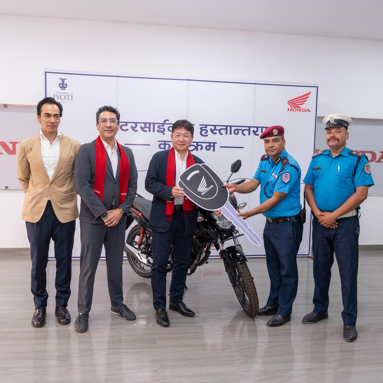 कार्यक्रममा होण्डा मोटर कम्पनी लिमिटेड एसिया तथा ओसिनिया क्षेत्रका उपाध्यक्ष तोसियो कुवाहारा तथा हिमाल मोटो नेपाल प्रा.लि.का सञ्चालक सौरभ ज्योतीले इलाका प्रहरी कार्यालय धकधईका प्रमुख रामभक्त भट्टराईलाई मोटरसाइकल हस्तान्तरण गरेका थिए ।